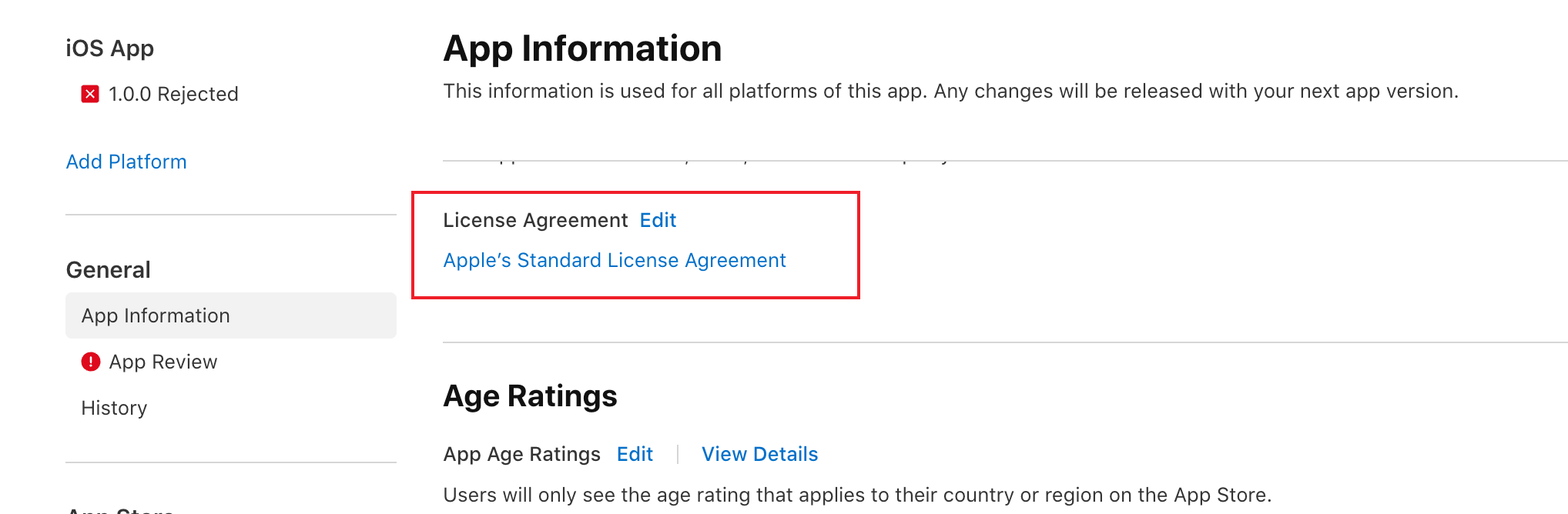 使用条款不明确,可以使用苹果提供的标准EULA,可以在App Store Connect