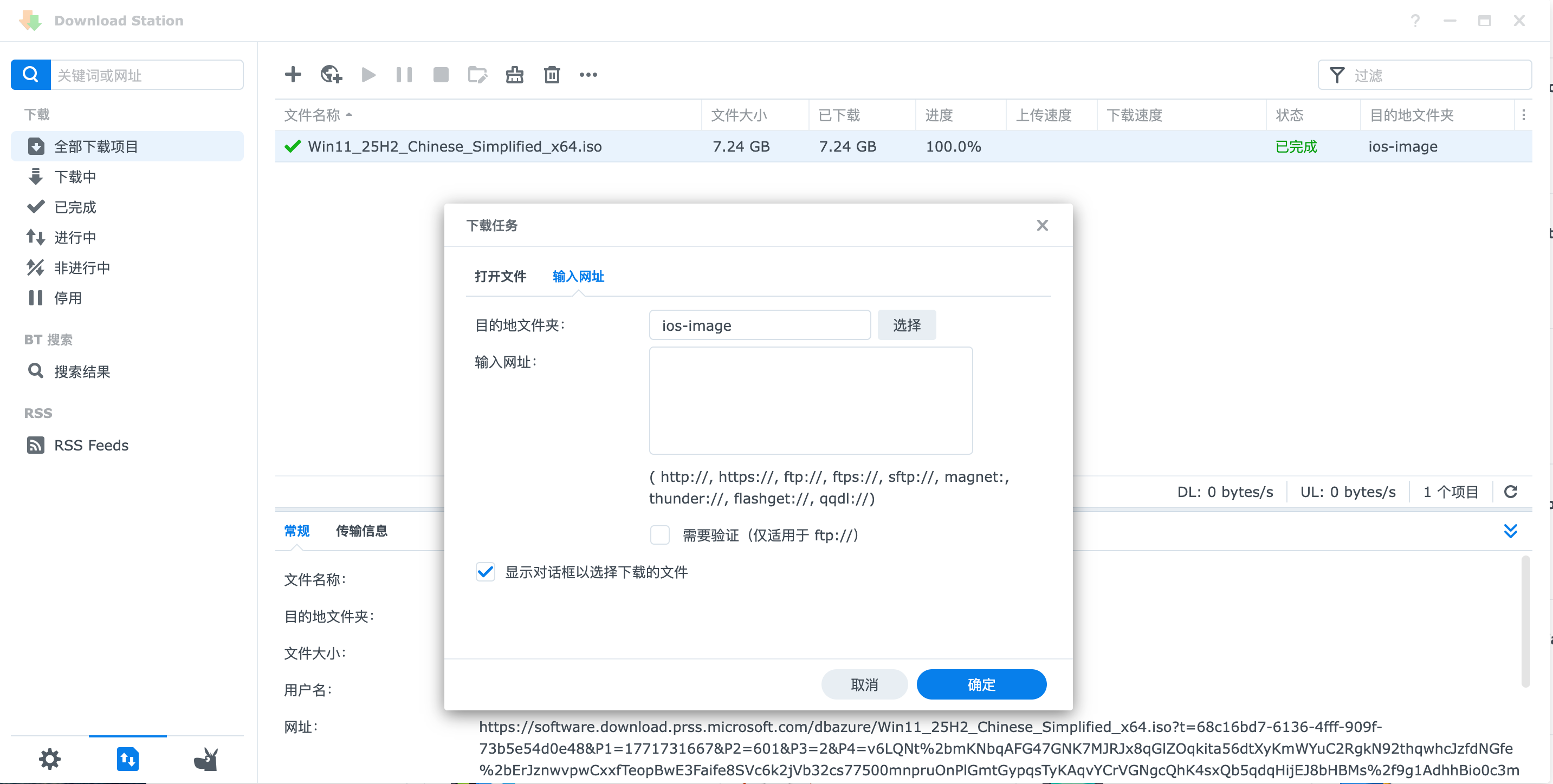 如果装有Download Station,可以复制下载链接到Download Station里下